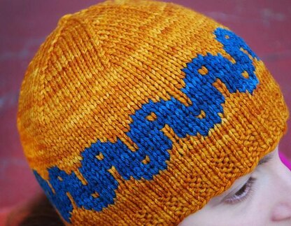 This collection contains the patterns for the Arsalis Hat and the Arsalis cowl. Both pattern use the same swirling colorwork pattern, and two skeins of the recommended yarn (one skein of each color) are enough to make the set.