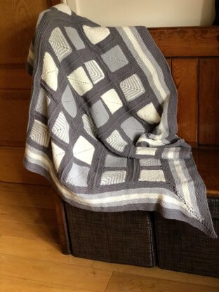 This blanket was designed for my new great-nephew, Arthur, who was born earlier this year. I wanted to use squares of different colours but I didn't want to end up having to sew them all together. I used two shades of grey and a cream, some squares were knitted in one colour and some in two to create a more interesting pattern when they were lined up.