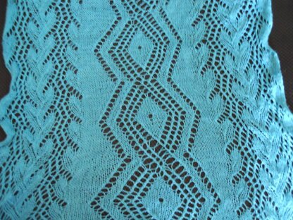 The Diamond and Branch variation is constructed by knitting the width of the stole for as long as desired just like a traditional stole/scarf.