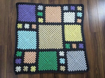 Finished size is approximately 6 times bigger than your 5-round square. Sample measures 33” square