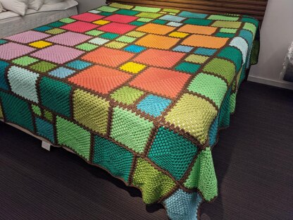 The idea behind the All Squared Away patterns is to take the traditional granny square pattern and make it sing! These patterns are designed to use squares of different sizes, which makes them ideal for using up scraps; while the joining method used cuts down on the number of ends you need to weave in.