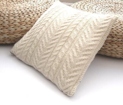 I backed the cushion with some pretty heavy linen fabric but you can choose fabric that matches your own decor or knit a plain reverse stocking stitch back. This is a cosy home accessory.