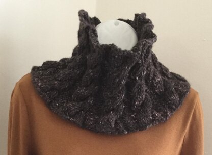 I started this design journey with the need for a cowl that would lay flat under my coat. This is it! This is a wonderfully squishy cabled cowl, knit up in a bulky weight yarn. The bottom portion provides for a slightly rounder, almost flared edge that expands with the natural shape of the shoulders. It is knit in the round from the bottom up and features slowing sloping upward cables.