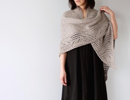 Bold yet feminine, Ashley features a beautiful leaf lace pattern and makes for a cozy accessory that wraps you up in instant style. The shawl knits up quickly with bulky weight yarn, and is worked from the point to the scalloped edge, enabling you to adjust the size easily as you go. The shawl can also be made with different yarn weights as you please.