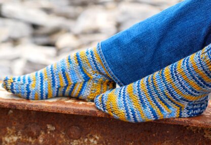 Yarn: Lorna’s Laces Cloudgate, 90% Superwash Merino/10% Nylon 120 yards/100g 2 skeins. Amount of yarn needed will depend on foot size. Men’s size 13 feet took approximately 200 yards; Women’s size 10 took 160.