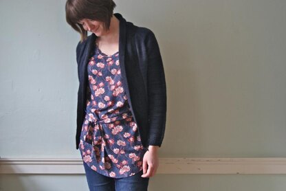 Aslant, knit in beautiful Smooshy from Dream in Color, is worked in one piece from the top down with raglan shaping. The collar is picked up and worked in a simple garter stitch rib pattern with increases to form slanting edges. Simple, but fun to knit and very cozy to wear.