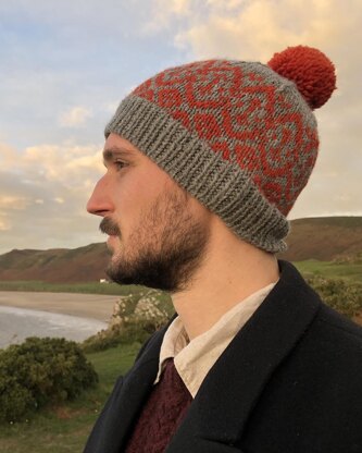 A fun, warm winter hat with a geometric stranded colourwork motif. Worked in two colours with an optional pom-pom, the hat features a tubular cast-on for a nice stretchy edge.
