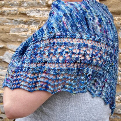 Gauge: 18 stitches/ 28 rows per 4 inches in wet-blocked stockinette. Gauge is not critical for this item, but it will affect drape and amount of yarn used.