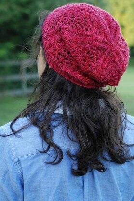 This pattern was originally created for the Tanis Fiber Arts yarn club and the sample shown was knit in Blue Label Fingering Weight, shade Cranberry.