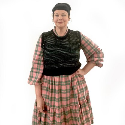 Astra Vest is a close-fitting, cropped garment, designed to be worn with 2.5-4.5” / 6.5-11.5 cm of negative ease at the bust. For a looser fit, you may choose to go up a size.