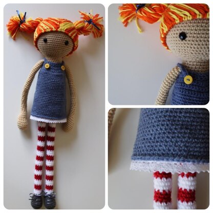 The pattern gives full and detailed instructions on how to make the doll, her hair and her dress.