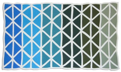 The repeating triangles compose a rythm. Should you choose to use of a variety of yarns in the design, the triangles will add some continuity to the piece. The white rows separators serve as a visual respite between the triangles of color, and add further uniformity to the overall design.