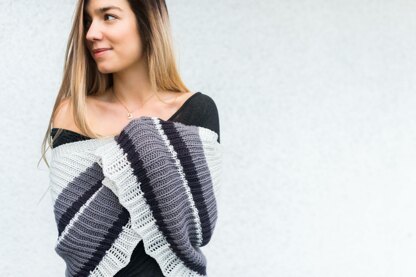 A slipped-stitch rib pattern and color changes make this an engaging yet meditative knit. The all-over ribbing creates a shawl that is cozy, springy and substantial. Add an openwork border and you’ve got all the components of a knitting project you can lose yourself in at the end of a stressful day. The finished shawl is a stylish, easy-to-wear accessory perfect for wrapping yourself up in all year round.