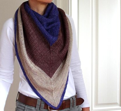 All good things come in threes … three colours and three patterns make a cosy triangle shawl in a generous size. It is worked top-down in fingering weight yarn and just perfect for using single skeins of your stash.