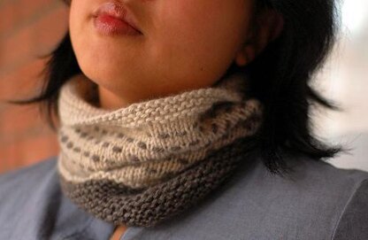 An easy to knit, cozy cowl with an intriguing woven stitch. Little pops of colour perk up a stockinette stitch background. The Attabi Cowl is knit with small amounts of soft, luxurious worsted weight yarn. Super quick to knit up and perfect for solid or handdyed yarns.