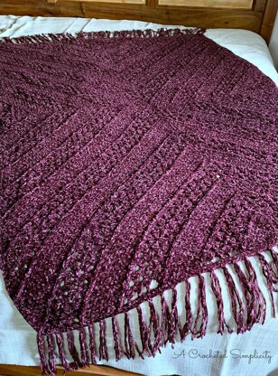 The Aubergine Afghan is crocheted with the luxurious Vel-Luxe, chenille yarn. Beginners and seasoned crocheters alike will love that this modern crochet blanket pattern pattern uses simple crochet stitches to create the textured design, making it perfect crochet blanket pattern for those days when you need to sit, crochet and decompress. It’ll quickly become your favorite cozy afghan to crochet and to cuddle up in this winter. It’s also perfect for gift giving!