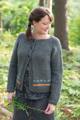 Sample shown with 3” positive ease was knit in Puffin by Quince and Co., shades Kittywake, Bird's Egg and Apricot. A suggested substitute yarn is shown below.