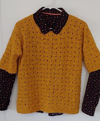 Aunt Sade Pullover is knit in the round from the bottom up in one piece, separated at the underarm and then worked flat. The drop shoulder sleeves are added with stitches picked up from the armhole.