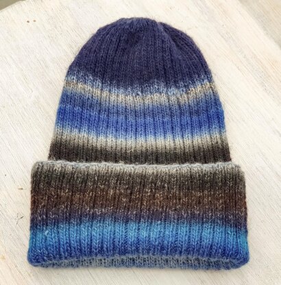 Aurora Austrails is a classic and easy to knit beanie pattern for kids and adults. Suitable for confident beginners. The self striping yarn makes it a fun project you can relax with. Altough it uses fingering weight yarn, it knits up quickly. Also perfect for using up remnants of sock yarn if you like to design your own stripes! SIZES: 6- 9 years, 10 - 14 years, 15 - 18 years or average adult To Fit Head circumference of about: 54-56, 56-58, 58-60 cm or 21 - 22, 22- 23 , 23 - 24 inches Height with double folded edge approx. 25-26-27 cm or 10 - 10.25 - 10.5 " MATERIALS: Fingering Weight Yarn, Suggestion: Lang Yarns Dipinto 100-100-100 g = 360 m GAUGE/ TENSION: 28 stitches and 32 rows in stocking stitch = 10 cm or 4 " square