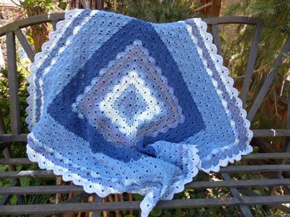Wie ein großes Granny wird diese Decke von der Mitte aus begonnen. Von der Größe kann diese Decke an die individuellen Wünsche angepasst werden.