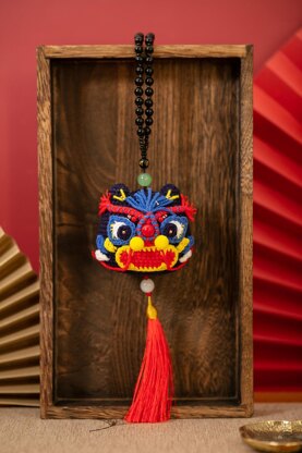 Materials Needed 4-ply milk cotton: navy blue #21(one ball); red #09 (10 grams); (white #01, bright yellow #12, royal blue #20) 5 grams each; One obsidian hanging rope One gold tassel Ten 4 mm red beads Two 10 mm white imitation jade beads Two 10 mm green imitation jade beads Twelve 2.5 mm gold beads Four 10 mm yellow pompoms Filling cotton (20 grams) Yarn needle Stitch marker Alcohol glue 1.8 mm crochet hook Beading needles
