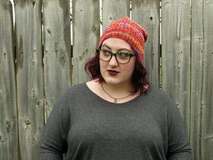 The Aust Cliff hat is meant to work with hand-dyed yarns to evoke the color layers of its namesake, and the four-row stitch pattern is easy to memorize, making this a perfect choice for a portable project.