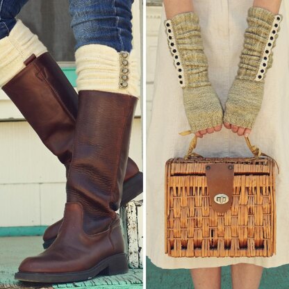 Short and Tall boot liners, as well as mitts, with a ruched cuff made horizontally in two pieces.