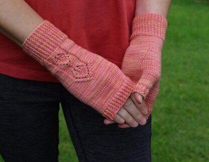 The mitts are worked in the round from the wrist to the fingers. The pattern is provided with written instructions and charts for the lace.