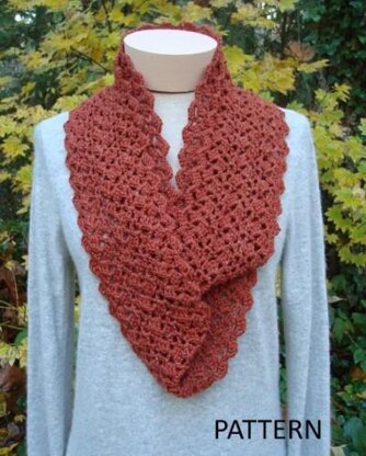 This Infinity Scarf is one continuous circle that you loop around your neck creating a double layer of warmth. This lovely winter accessory is crocheted in a soft, warm and wonderful yarn that has just a touch of glitter. The scarf can be crocheted quickly and easily with just a one-row repeat and can be made in almost any light DK or sports weight yarn.