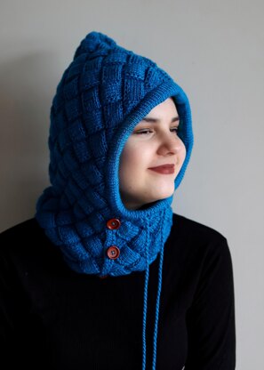 This balaclava is knit flat and then seamed, but the face opening binding is knit in the round. You will need knitting needles for knitting flat and for knitting in the round, both the same size to obtain the gauge.