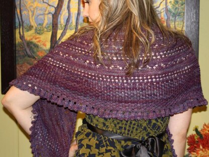 Notes: Pattern is written in two sizes. A shawlette with a picot edge and a Shawl with a pleated edge.