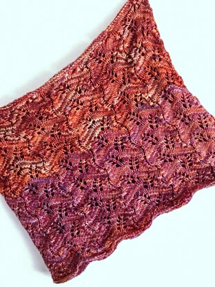 Knitted in the round, this stunning cowl is sure to make a fashion statement with its leafy, lace-like design and scalloped edge. The pattern is fun, clear and easy to follow, it is also easily adjustable to suit your requirements. I enjoyed every aspect of designing this cowl and I hope you have lots of fun making it. Happy knitting!