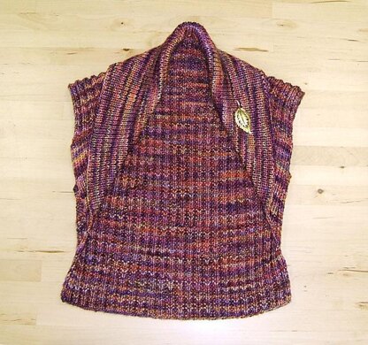Vest/shrug shown in picture is size 32" - 36". This is a very easy knit, very quick and impressive when finished. Malabrigo's Rios is fabulous - soft, sumptuous, glorious colors (Archangel is the color shown).