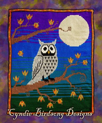 Welcome in the Fall season with my Autumn Moon Owl blanket! Mr. Owl sits on a tree branch under the full Harvest Moon, surrounded by beautiful fall-colored leaves. This blanket uses the Overlay Mosaic Crochet method, consisting of blsc’s & fldc’s so it’s easier than it might look - This design works well with variegated or speckled yarn colors for the leaves, branches, owl & even the sky!