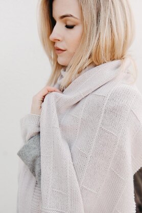 The Autumn sea stole is a rectangle stole worked in a simple stockinette stitch with vertical lines created by slipped stitches and horizontal lines created by purl stitch rows. It begins and ends with a garter stitch border, and a similar border is worked along both sides.