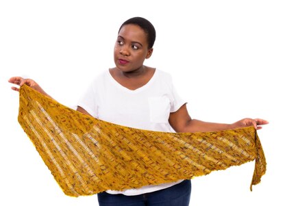 The shawl is a one skein project!!! A bigger shawl can be knit if more yarn is used – all you need to do is to work more pattern repeats. This asymmetric shawl is knit using a combination of garter and drop stitch. One side of the shawl and the bottom edge have a picot edging to add more interest to the project. The shawl is an easy to knit project perfect for TV knitting and traveling. It’s also perfect for showing off that one unique skein of yarn!