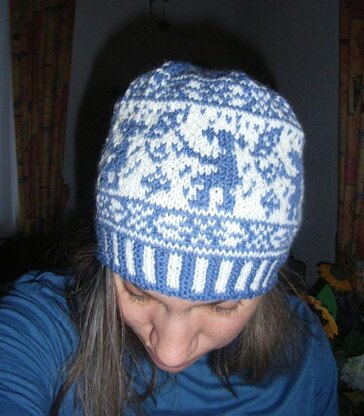 It has a two-colored (corrugated) ribbing and a nice leaves peerie (= border pattern). At the top is a smiling storm cloud...