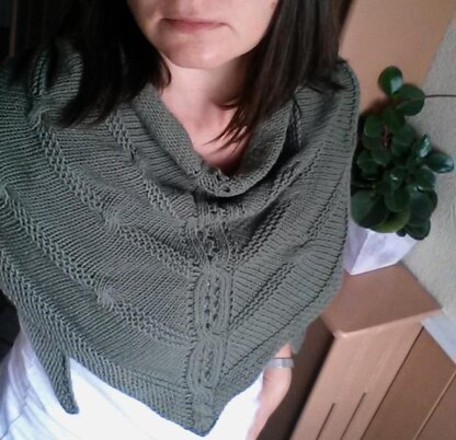 The shawl has one centre cable motive and repeating cable 'twists' on both sides. Not a very complicated pattern but you have to be careful counting stitches.
