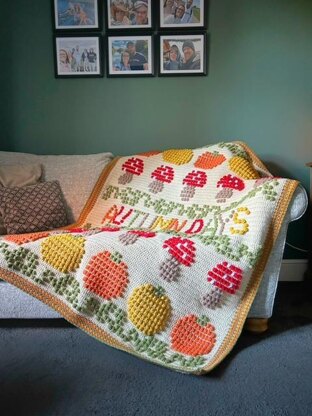 Autumnal days are made even cosier with a blanket full of bobble pumpkins and toadstools.