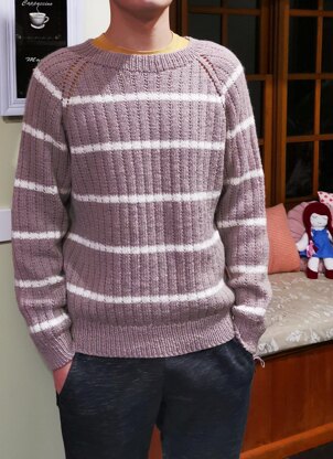 This classic raglan sweater is designed to be a comfy, casual but stylish in mind. The raglan style sweater knitted seamlessly top down in striped pattern using classic garter rib stitches to enhance the texture.
