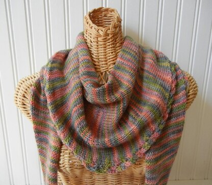 Have questions on the instructions? PM me here on Rav, or send me an email at woolybearhandknits@yahoo.com. Graceful scarf/shawlette is knitted tip to tip. Sloped edges meet in a gentle curve in the center; scalloped edge created with a cable. Smooth I-cord rolled edge along neckline. Gull wing V shaping created by short rows in the center. Can be worn as a scarf or as a shawlette.