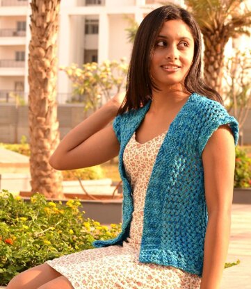 Aviva, Hebrew word for springtime, is a lacy spring cardigan. The elegant lacy body is accentuated by German rib collars and hems. Aran weight yarn combined with a simple 2row repeat of lace pattern makes this cardigan a quick knit.