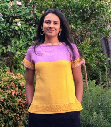 'Avni’ is a top-down raglan tee. It is a collage of 2 colours and 2 textured elements. Changing colour and working the bobbles in between the ribbing and working a section of seed stitch pattern between two rows of bobbles, at the bottom section and sleeves, adds a bit of challenge, to an otherwise beginner friendly design. Video support for incorporating the bobbles in the ribbing is included. Rest of the garment is worked in Stokinete. The length of the garment can be customized to the desired length, while working the body section. Craft - Knitting Published - April 2021 Suggested yarn - Mondial Duetto (Cotton/Merino) Yarn weight - Worsted / 10 ply (9 wpi) ? Gauge - 21 stitches / 26 rows 4*4 inches (worked flat) Needle size -US 7 - 4.5 mm 32' circulars US 6 - 4.0 mm/ 3.5 mm DPN's Yardage - 1148 - 1203 yards (1050 - 1100 m) Sizes available - XS (S, M, L, 1X) Languages English Atributes: in-the-round, raglan-sleeve, textured, top-down, video-tutorial, written-pattern