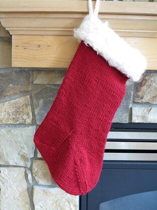 A slight resemblance to Santa Claus himself, this stocking will look charming hung from the mantel, over flowing with stocking stuffers. This stocking is knit out of a bulky yarn for a quick project and one that can withstand the extra weight! Be ready to make one for everyone in the family, even the extended family!