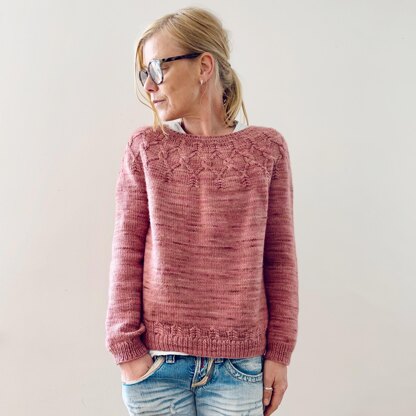Ayami is worked seamlessly from the top down. Starting with the neck shaping, short rows are worked back and forth to create a higher back neck. The yoke is then worked in the round to sleeve separation. Sleeve stitches are placed on hold to work the body top down. Sleeves are worked top down in rounds to the cuffs. No finishing required.