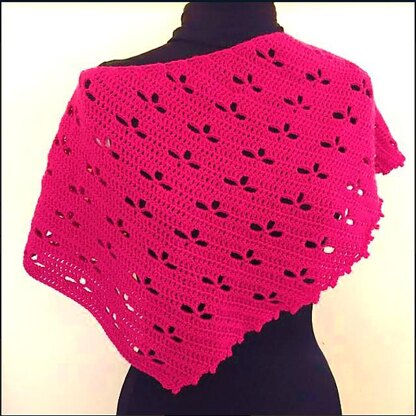 This is a pretty asymmetric shawl which is dotted with little blossoms.
