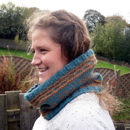 Jazzy Slip Stitch cowl knitted in the round. Inspired by the Aztec symbols that can be created using mosaic knitting & the intense colourways of this gorgeous chunky yarn by The Fibre Co.