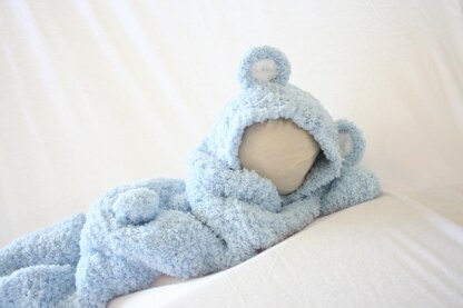 Body is knitted. Ears and tail are crochet. It doesn't get much cuter than this! This plush, hooded onsie features enclosed hands and feet. Extra soft and fluffy yarn simulates the bear feel, and an adorable bear tail finishes the outfit. Four small buttons can be closed anywhere along the front. Make your next photo session extra special with this baby bear onsie costume! Pattern is detailed and easy to follow!