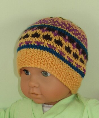 This is my Baby and Toddler Simple Fairisle Beanie Hat knitting pattern. The knitting pattern provides full instructions for 3 sizes S (0-6 months), M (6-12 months) & L (1-3 years) and there is a full colour chart for the fairisle part of the pattern. Its worked flat on 4 mm needles and is an ideal way of using up small leftovers from other projects.