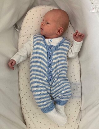 This is my Baby Bamboo Stripe Dungarees knitting pattern. These dungarees are so soft to wear and are really easy to make. They look fabulous worn over a sleep suit when very young. My grandson Jasper can be seen wearing them here at just 10 days old. The knitting pattern provides full instructions for 3 baby sizes: Small (0-3 months), Medium (3-6 months) & Large (6-9 months) and there are lots of step by step photos to help you throughout. They are worked flat on 4 mm needles in any dk bamboo yarn of your choice.